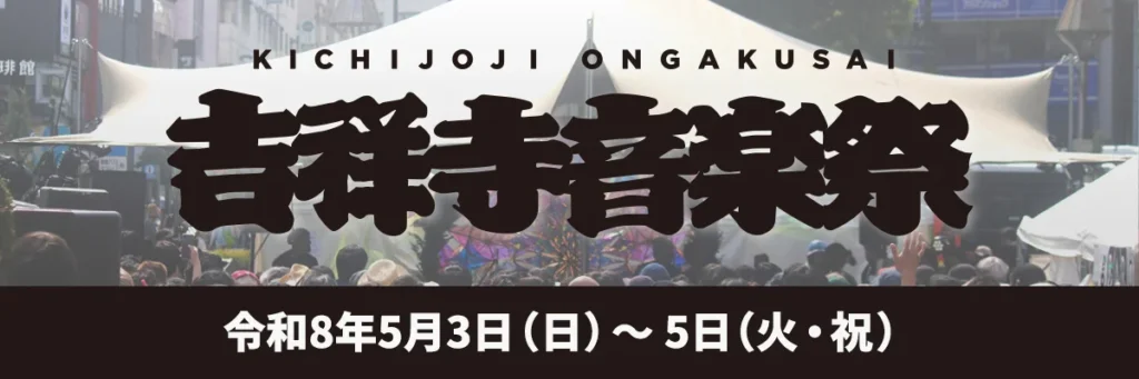 吉祥寺音楽祭実行委員会では、令和8年5月3日(日)~5日(火・祝)の3日間、「第41回吉祥寺音楽祭」を開催いたします!昨年に続き、街の皆様と力を合わせながら、吉祥寺全域を舞台に”文化と創造のお祭り”を盛大にお届けします。